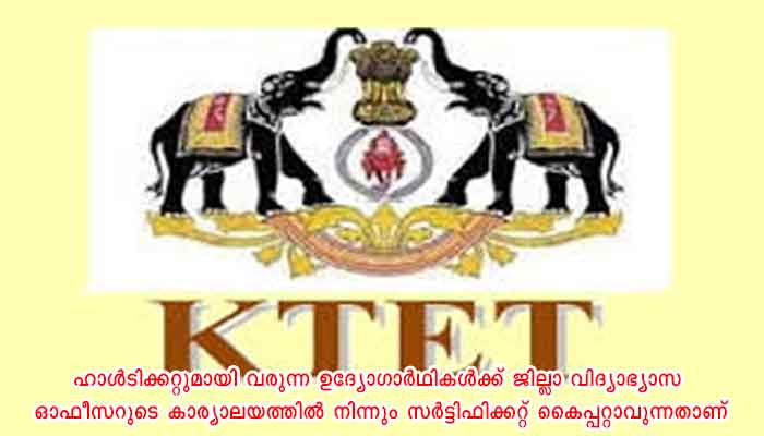 എറണാകുളം: കെടെറ്റ്: സര്ട്ടിഫിക്കറ്റ് കൈപ്പറ്റണം