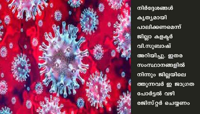 കണ്ണൂര്‍: കോവിഡ്‌ അതിരൂക്ഷമായ സാഹചര്യത്തില്‍ വിദേശത്തുനിന്നും ഇതര സംസ്ഥാനങ്ങളില്‍ നിന്നും എത്തുന്നവര്‍ക്കായി പുതിയ മാര്‍ഗ നിര്‍ദ്ദശങ്ങള്‍ പുറപ്പെടുവിച്ചു. നിര്‍ദ്ദേശങ്ങള്‍ കൃത്യമായി പാലിക്കണമെന്ന്‌ ജില്ലാ കളക്ടര്‍ വി.സുബാഷ്‌ അറിയിച്ചു. ഇതര സംസ്ഥാനങ്ങളില്‍ നിന്നും ജില്ലയിലെത്തുന്നവര്‍ ഇ ജാഗ്രത പോര്‍ട്ടല്‍ വഴി രജിസ്‌റ്റര്‍ ചെയ്യണം.