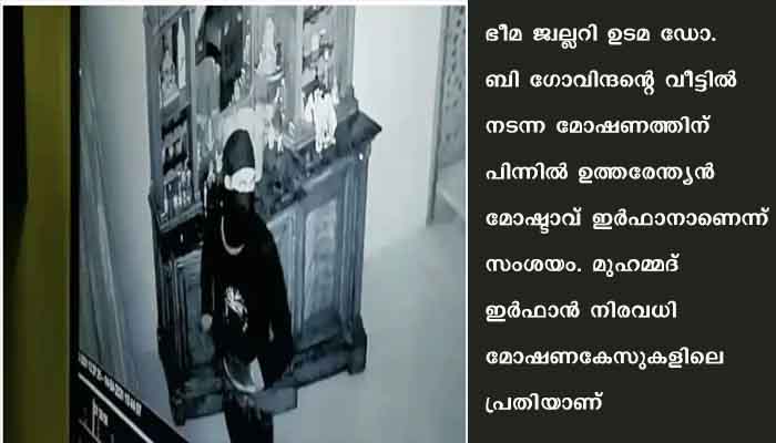 തിരുവനന്തപുരം : ഭീമ ജ്വല്ലറി ഉടമ ഡോ. ബി ഗോവിന്ദന്റെ വീട്ടില് നടന്ന മോഷണത്തിന് പിന്നില് ഉത്തരേന്ത്യന് മോഷ്ടാവ് ഇര്ഫാനാണെന്ന് സംശയം. മുഹമ്മദ് ഇര്ഫാന് നിരവധി മോഷണകേസുകളിലെ പ്രതിയാണ്. ദില്ലി പോലീസിന്റെ നോട്ടപ്പുളളിയായ ഇയാള് ബീഹാര് സ്വദേശിയാണെന്ന് പോലീസ് പറയുന്നു.