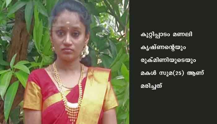 ഓടിട്ട വീടിന്റെ മേല്ക്കൂരയില് തീ കണ്ടതിനെ തുടര്ന്ന് നാട്ടുകാരാണ് പോലീസിനേയും ഫയര്ഫോഴ്സിനേയും വിവരമറിയിച്ചത്. സുമയുടെ അമ്മ ഒരു വിവാഹ ചടങ്ങിനും പിതാവ് കളത്തില് പണിക്കും പോയ സമയത്താണ് സംഭവം. സുമയുടെ ഇരട്ട സഹോദരി സുധ വിവാഹിതയാണ്.