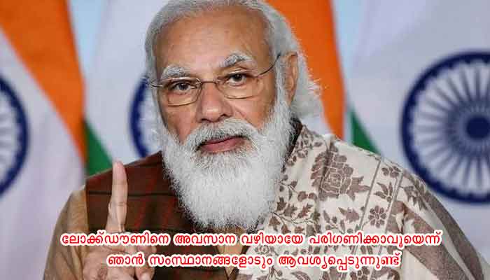 ലോക്ക്ഡൗണിനെ അവസാന വഴിയായേ പരിഗണിക്കാവൂയെന്ന് ഞാന് സംസ്ഥാനങ്ങളോടും ആവശ്യപ്പെടുന്നുണ്ട്. ലോക്ക്ഡൗണില് നിന്നും രക്ഷപ്പെടാന് നമ്മള് കഠിനമായി പരിശ്രമിക്കണം. മൈക്രോ കണ്ടയ്ന്മെന്റ് സോണുകളിലാണ് നമ്മള് എല്ലാ ശ്രദ്ധയും നല്കേണ്ടതെന്നും പ്രധാനമന്ത്രി പറഞ്ഞു.