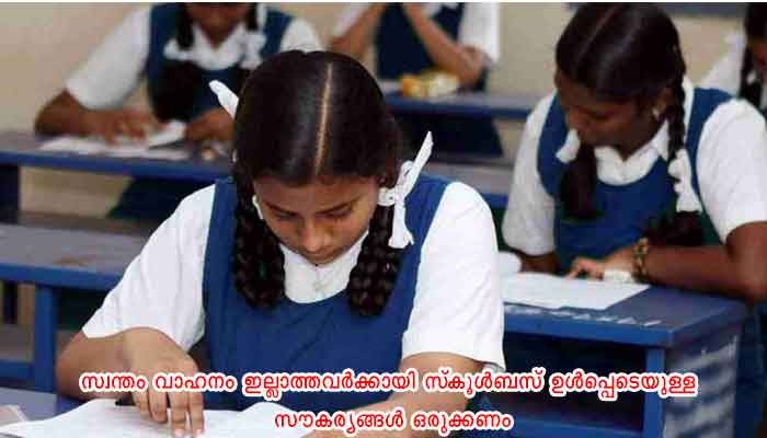പരീക്ഷ എഴുതുന്ന കുട്ടികള്‍ വീട്ടില്‍ നിന്നും പുറപ്പെടുന്നതു മുതല്‍ പരീക്ഷ കഴിഞ്ഞ് വീട്ടില്‍ എത്തുന്നത് വരെയുള്ള കാര്യങ്ങള്‍ മൈക്രോപ്ലാനില്‍ ഉള്‍പ്പെടുത്തണം. സ്‌കൂളിലേക്കും തിരിച്ചുമുള്ള കുട്ടികളുടെ യാത്രാസൗകര്യം ഉറപ്പാക്കണം. സ്വന്തം വാഹനമുള്ള രക്ഷിതാക്കള്‍ ആ സൗകര്യം ഉപയോഗപ്പെടുത്തണം. സ്വന്തം വാഹനം ഇല്ലാത്തവര്‍ക്കായി സ്‌കൂള്‍ബസ് ഉള്‍പ്പെടെയുള്ള സൗകര്യങ്ങള്‍ ഒരുക്കണം. അവസാന ഘട്ടത്തില്‍ മാത്രമേ പൊതുഗതാഗതം ഉപയോഗപ്പെടുത്താന്‍ പാടുള്ളൂ. സാനിറ്റൈസര്‍, സോപ്പ്, വെള്ളം തുടങ്ങിയവ സ്‌കൂള്‍ പ്രവേശനകവാടത്തില്‍ തന്നെ ഉറപ്പാക്കണം. തെര്‍മല്‍സ്‌കാനര്‍ ഉപയോഗിച്ചുകൊണ്ടുള്ള പരിശോധനയില്‍ അലംഭാവം ഉണ്ടാവരുത്.