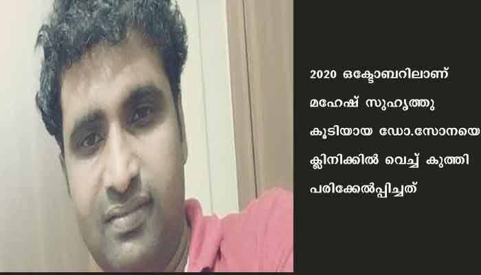 ചോറ്റാനിക്കരയിലെ ലോഡ്ജില് ഫാനില് തൂങ്ങിമരിച്ച നിലയില് 22/04/21 വ്യാഴാഴ്ച വൈകുന്നേരമാണ് മഹേഷിനെ കണ്ടെത്തിയത്. 2020 ഒക്ടോബറിലാണ് മഹേഷ് സുഹൃത്തുകൂടിയായ ഡോ.സോനയെ ക്ലിനിക്കില് വച്ച് കുത്തി പരിക്കേല്പ്പിച്ചത്.