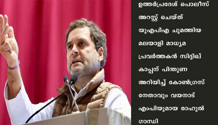 “സിദ്ദിഖ് കപ്പന്റെ കുടുംബത്തിന് ഞാന് പിന്തുണ അറിയിക്കുന്നു. അദ്ദേഹം സംരക്ഷണവും വൈദ്യസഹായവും അര്ഹിക്കുന്നുണ്ട്. ആര്എസ്എസിന്റെയും ബിജെപിയുടെയും ഭീരുത്വമാണ് കാപ്പനെ അറസ്റ്റ് ചെയ്തതിലൂടെ വ്യക്തമായിരിക്കുന്നത്. കുറ്റകൃത്യങ്ങളെയാണ് തടയേണ്ടത്, വാര്ത്തകളെയല്ല ” രാഹുൽ പറഞ്ഞു.