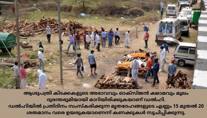 ആശുപത്രി കിടക്കകളുടെ അഭാവവും ഓക്സിജൻ ക്ഷാമവും മൂലം ദുരന്തഭൂമിയായി മാറിയിരിക്കുകയാണ് ഡൽഹി.