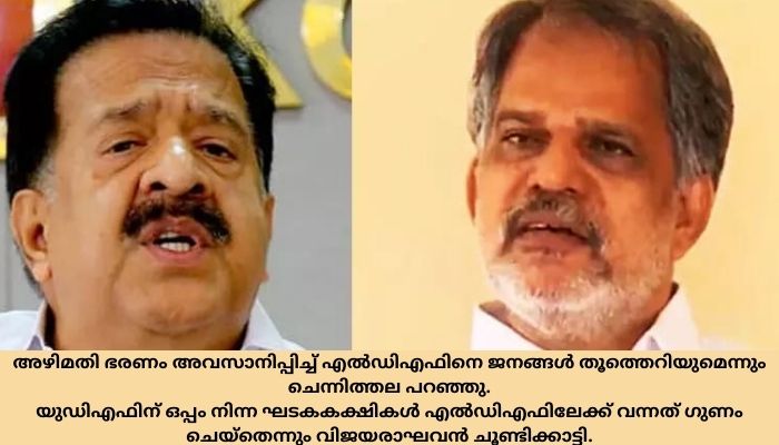 എക്സിറ്റ് പോള്, സര്വേ ഫലങ്ങള് ജനങ്ങളുടെ യഥാര്ത്ഥ വികാരങ്ങള് പ്രതിഫലപ്പിക്കുന്നവയല്ല. കേരളത്തിലെ ജനങ്ങളില് യുഡിഎഫിന് പൂര്ണ വിശ്വാസമെന്നും ചെന്നിത്തല. പിണറായി വിജയന് സര്ക്കാരിന്റെ എക്സിറ്റ് റിസള്ട്ടാണ് വരാന് പോകുന്നത്. അഴിമതി ഭരണം അവസാനിപ്പിച്ച് എല്ഡിഎഫിനെ ജനങ്ങള് തൂത്തെറിയുമെന്നും ചെന്നിത്തല പറഞ്ഞു.