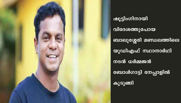 ഷൂട്ടിംഗിനായി വിദേശത്തുപോയ ബാലുശ്ശേരി മണ്ഡലത്തിലെ യുഡിഎഫ് സ്ഥാനാർഥി നടൻ ധർമ്മജൻ ബോൾഗാട്ടി നേപ്പാളിൽ കുടുങ്ങി . ഇന്ത്യയിലേക്കുള്ള യാത്രാ വിലക്ക് വന്നതോടെ ധർമ്മജൻ ബോൾഗാട്ടിക്ക് ഇന്നത്തെ വോട്ടെണ്ണലിൽ സാക്ഷ്യംവഹിക്കാൻ മണ്ഡലത്തിൽ എത്താനാവില്ല എന്ന് റിപ്പോർട്ടുകൾ .