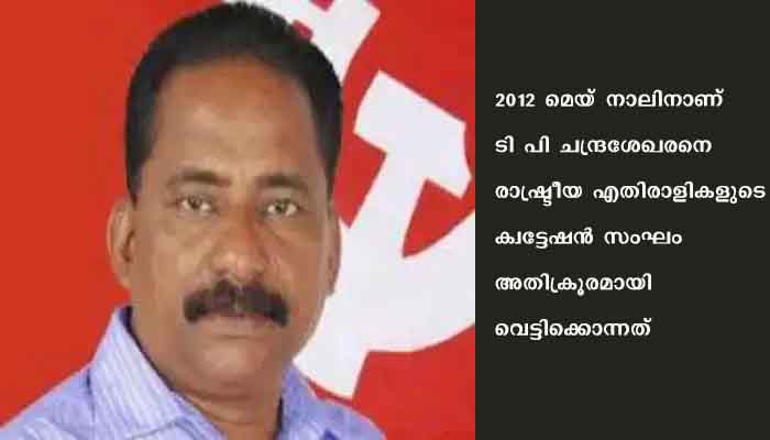 2012 മെയ് നാലിനാണ് ടി പി ചന്ദ്രശേഖരനെ രാഷ്ട്രീയ എതിരാളികളുടെ ക്വട്ടേഷൻ സംഘം അതിക്രൂരമായി വെട്ടിക്കൊന്നത്. വടകര വള്ളിക്കാട് ജംഗ്ഷനില് വെച്ച് ഇന്നോവ കാറിലെത്തിയ സംഘം ചന്ദ്രശേഖരനെ വെട്ടിക്കൊലപ്പെടുത്തുകയായിരുന്നു.