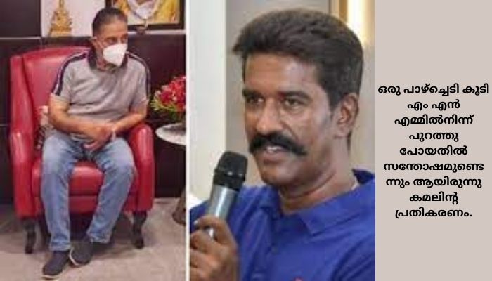 മഹീന്ദ്രനെ ചതിയനെന്ന് വിശേഷിപ്പിച്ചുകൊണ്ട് ഇയാളെ പാർട്ടിയിൽ നിന്നും പുറത്താക്കാൻ ഒരുങ്ങുകയായിരുന്നു എന്നും ഒരു പാഴ്ച്ചെടി കൂടി എം എൻ എമ്മിൽനിന്ന് പുറത്തു പോയതിൽ സന്തോഷമുണ്ടെന്നും ആയിരുന്നു കമലിന്റ പ്രതികരണം.