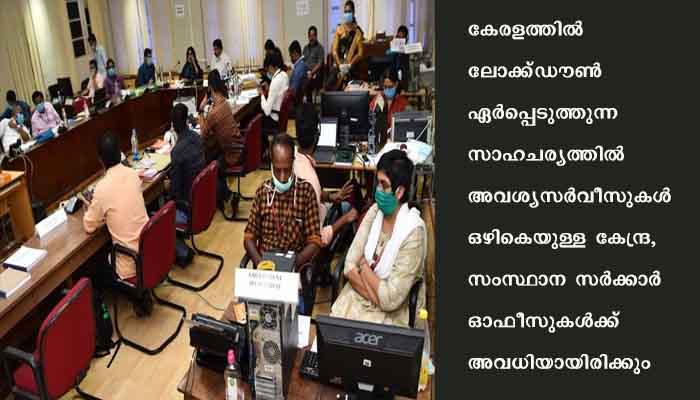 ലോക്ക്ഡൗണ്‍: അവശ്യസര്‍വീസുകള്‍ ഒഴികെയുള്ള കേന്ദ്ര, സംസ്ഥാന സര്‍ക്കാര്‍ ഓഫീസുകള്‍ക്ക് അവധി