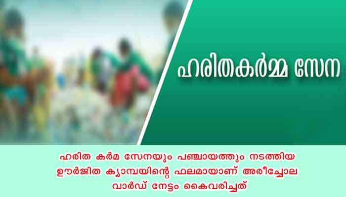 മുഴുവന്‍ വീടുകളില്‍ നിന്നും അജൈവ മാലിന്യ ശേഖരണം, എല്ലാ വീടുകളിലും ജൈവ മാലിന്യ സംസ്‌കരണ മാര്‍ഗങ്ങള്‍, മുഴുവന്‍ വീടുകളില്‍ നിന്നും സ്ഥാപനങ്ങളില്‍ നിന്നും യൂസര്‍ ഫീ, ഹരിതനിയമാവലി വിദ്യാഭ്യാസം എന്നിങ്ങനെ ഹരിതകേരളം മിഷന്‍ മുന്നോട്ടു വെച്ച പ്രധാനപ്പെട്ട ലക്ഷ്യങ്ങള്‍ നൂറ് ശതമാനമാനവും നടപ്പാക്കിയാണ് ഹരിതവാര്‍ഡായി അരീച്ചോല മാറിയത്. നേട്ടത്തിനായി പ്രവര്‍ത്തിച്ച വാര്‍ഡ് മെമ്പറും വികസനകാര്യ സ്ഥിരം സമിതി ചെയര്‍ പേഴ്‌സണുമായ പി.കെ സഫ്‌ന അനസ്, ഹരിത കര്‍മ സേന അംഗങ്ങളായ ദിവ്യ, ശാരദ എന്നിവരെ പഞ്ചായത്ത് ഭരണ സമിതി അഭിനന്ദിച്ചു.