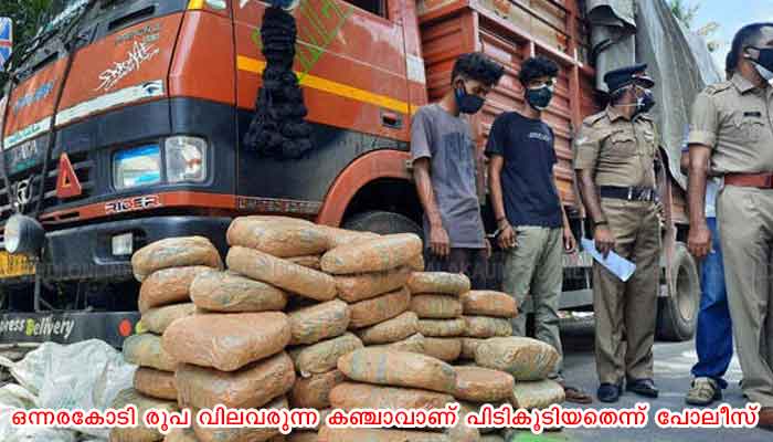 തിരുവനന്തപുരം: തലസ്ഥാനത്ത് കോവിഡ് നിയന്ത്രണങ്ങളെ തുര്‍ന്നുളള വാഹന പരിശോധനക്കിടെ കഞ്ചാവുമായി രണ്ടുപേര്‍ പിടിയിലായി. 300 കിലോ കഞ്ചാവുമായി ആക്കുളത്തുനിന്നാണ് യുവാക്കള്‍ പിടിയിലായത്. ഇടുക്കി തൊടുപുഴ സ്വദേശി ബനാഷ്, മലപ്പുറം സ്‌ദേശി അജനാസ് എന്നിവരാണ് പിടിയിലായത്. ഇരുവര്‍ക്കും 27 വയസാണ്. ഒന്നരകോടി രൂപ വിലവരുന്ന കഞ്ചാവാണ് പിടികൂടിയതെന്ന് പോലീസ് അറിയിച്ചു.