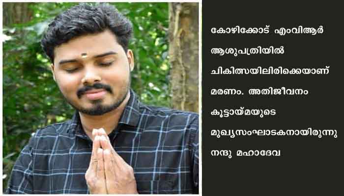 കോഴിക്കോട് എംവിആര്‍ ആശുപത്രിയില്‍ ചികിത്സയിലിരിക്കെയാണ് മരണം. അതിജീവനം കൂട്ടായ്മയുടെ മുഖ്യസംഘാടകനായിരുന്നു നന്ദു മഹാദേവ.