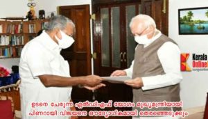 നിയമസഭാ തെരഞ്ഞെടുപ്പിൽ ഇടതുമുന്നണി മികച്ച ഭൂരിപക്ഷം നേടിയ സാഹചര്യത്തിൽ സർക്കാർ രൂപീകരണത്തിനായി അവകാശവാദം ഉന്നയിച്ചു കൊണ്ട് വർണർക്ക് പിണറായി വിജയൻ ഔദ്യോഗികമായി കത്തും നൽകി.