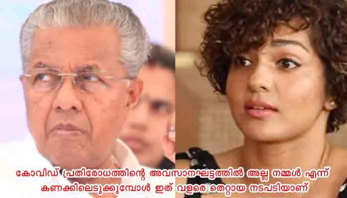 കോവിഡ് പ്രതിരോധത്തിനായി സംസ്ഥാന സർക്കാർ ചെയ്തുകൊണ്ടിരിക്കുന്നത് എല്ലാം നല്ല കാര്യങ്ങളാണ് എങ്കിലും സത്യപ്രതിജ്ഞാ ചടങ്ങിൽ 500 പേർ പങ്കെടുക്കുന്നതിനെതിരെ വിമർശനവുമായി എത്തിയിരിക്കുകയാണ് നടി പാർവതി. കോവിഡ് കേസ് കൂടി വരുന്ന ഈ സാഹചര്യത്തിൽ എൽഡിഎഫ് സർക്കാരിന്റെ സത്യപ്രതിജ്ഞാ ചടങ്ങിൽ 500 പേർ പങ്കെടുക്കുന്നത് കൂടുതൽ അല്ല എന്ന് കരുതരുതെന്നും അവസാനഘട്ടത്തിൽ കണക്കിലെടുക്കുമ്പോൾ ഇത് വളരെ തെറ്റായ നടപടിയാണെന്നും നടി പാർവ്വതി പറഞ്ഞു.