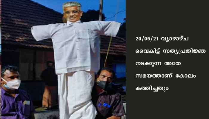 20/05/21 വ്യാഴാഴ്ച വൈകിട്ട് സത്യപ്രതിജ്ഞ നടക്കുന്ന അതേസമയത്താണ് കോലം കത്തിച്ചതും. സുകുമാരന് നായര് പ്രഖ്യാപിക്കുന്ന രാഷ്ട്രീയ നിലപാടുകള് അദ്ദേഹത്തിന്റേത് മാത്രമെന്നും എന്എസ്എസിന്റേത് അല്ലെന്നും പ്രതിഷേധക്കാര് പറഞ്ഞു.
