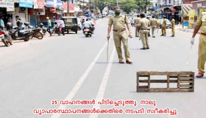 കഴിഞ്ഞ രണ്ടുദിവസമായി കോവിഡ് പ്രോട്ടോകോള് ലംഘനങ്ങള്ക്ക് 164 കേസുകള് രജിസ്റ്റര് ചെയ്തു, 149 ആളുകളെ അറസ്റ്റ് ചെയ്തു. 25 വാഹനങ്ങള് പിടിച്ചെടുത്തു. നാലു വ്യാപാരസ്ഥാപനങ്ങള്ക്കെതിരെ നടപടി സ്വീകരിച്ചു. ക്വാറന്റീന് ലംഘനത്തിന് ഒരു കേസെടുത്തു. മാസ്ക് കൃത്യമായി ഉപയോഗിക്കാത്തതിന് 739 പേര്ക്കെതിരെയും, സാമൂഹിക അകലം പാലിക്കാത്തതിന് 221 ആളുകള്ക്കെതിരെയും പെറ്റി കേസെടുക്കുകയോ നോട്ടീസ് നല്കുകയോ ചെയ്തു.