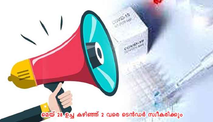 ആലപ്പുഴ : ആലപ്പുഴ ജനറൽ ആശുപത്രിയുടെ ലാബിലേക്ക് സി ആർ. പി ടെസ്റ്റ് കിറ്റ് വിതരണം ചെയ്യുന്നതിലേക്ക് മുദ്രവെച്ച ടെൻഡർ ക്ഷണിച്ചു. മെയ് 28 ഉച്ച കഴിഞ്ഞ് രണ്ടു വരെ ടെൻഡർ സ്വീകരിക്കും. അന്നേദിവസം വൈകീട്ട് മൂന്നിനു തുറക്കും. സൂപ്രണ്ട്, ജനറൽ ഹോസ്പിറ്റൽ, ആലപ്പുഴ എന്ന വിലാസത്തിൽ ടെൻഡർ അയ്ക്കണം. വിശദ വിവരത്തിന് ഫോൺ :0477 2253324.