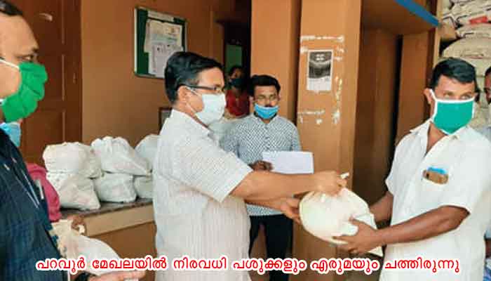 ആലപ്പുഴ: കുളമ്പുരോഗം ബാധിക്കുകയും ചത്തുപോകുകയും ചെയ്ത കന്നുകാലികളുള്ള ക്ഷീരകർഷകർക്ക് ലോക്ഡൗൺ പശ്ചാത്തലത്തിൽ ഭക്ഷ്യക്കിറ്റ് നൽകി പുന്നപ്ര വടക്ക് പഞ്ചായത്ത്. സുമനസുകളുടെ സഹായത്തോടെ ശേഖരിച്ച ഭക്ഷ്യ കിറ്റുകളുടെ വിതരണോദ്ഘാടനം പുന്നപ്ര വടക്ക് പഞ്ചായത്ത് പ്രസിഡന്റ് സജിതാ സതീശൻ നിർവഹിച്ചു. പറവൂർ സഹകരണ സംഘത്തിലെ കർഷകർക്കാണ് കിറ്റ് വിതരണം ചെയ്തത്. കുളമ്പുരോഗം ബാധിച്ച് അമ്പലപ്പുഴ, കരുമാടി, കഞ്ഞിപ്പാടം, പറവൂർ മേഖലയിൽ നിരവധി പശുക്കളും എരുമയും ചത്തിരുന്നു. പറവൂർ ക്ഷീര സംഘം പ്രസിഡന്റ് സജി ലാൽ ചടങ്ങിൽ അധ്യക്ഷത വഹിച്ചു.