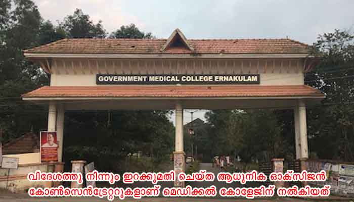 ആദിത്യ ബിർള ഗ്രൂപ്പിന്റെ ഏലൂരിലെ ഹിൻഡാൽകോ ഇൻഡസ്ട്രീസ് സാമൂഹ്യപ്രതിബദ്ധത ഫണ്ട് ഉപയോഗിച്ച് വിദേശത്തു നിന്നും ഇറക്കുമതി ചെയ്ത ആധുനിക ഓക്സിജൻ കോൺസെൻട്രേറ്ററുകളാണ് മെഡിക്കൽ കോളേജിന് നൽകിയത്. മെഡിക്കൽ കോളേജ് അഡ്മിനിസ്ട്രേറ്റീവ് ബ്ലോക്കിൽ നടന്ന ചടങ്ങിൽ ജില്ലാ കളക്ടർ എസ് സുഹാസ്, ഹിൻഡാൽകോ ഇൻഡസ്ട്രീസ് ലിമിറ്റഡ് എഛ് ആർ ഹെഡ് പി വി മനോജ്, അലൂമിനിയം ഫാക്ടറീസ് വർക്കേഴ്സ് യൂണിയൻ പ്രസിഡന്റ് കെ എൻ ഗോപിനാഥ്, സെക്രട്ടറി അഡ്വ മുജീബ് റഹ്മാൻ, ഏലൂർ നഗരസഭാ അധ്യക്ഷൻ എ ഡി സുജിൽ, മെഡിക്കൽ കോളേജ് പ്രിൻസിപ്പൽ ഡോ ഫത്താഹുദ്ധീൻ, സൂപ്രണ്ട് ഡോ ഗീത നായർ, ആർ എം ഒ ഡോ ഗണേഷ് മോഹൻ എന്നിവർ സന്നിഹിതരായിരുന്നു.