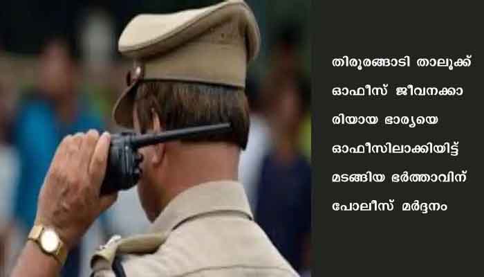 തിരൂരങ്ങാടി: തിരൂരങ്ങാടി താലൂക്ക് ഓഫീസ് ജീവനക്കാരിയായ ഭാര്യയെ ഓഫീസിലാക്കിയിട്ട് മടങ്ങിയ ഭര്ത്താവിന് പോലീസ് മര്ദ്ദനം. താലൂക്ക് ഓഫീസിലെ ടൈപ്പിസ്റ്റ് പരപ്പനങ്ങാടി സ്വദേശി മേഖയെ രാവിലെ 9.30ന് ടൗണില് എത്തിച്ച് മടങ്ങുകയായിരുന്നു ഭര്ത്താവ് പ്രമോദ്. ഭര്ത്താവിന്റെ കൂടെ ബൈക്കില് പരപ്പനങ്ങാടി ടൗണില് എത്തിയശേഷം അവിടെനിന്ന് താലൂക്ക് ഓഫീസ് വാഹനത്തിലാണ് മേഘ ഓഫീസിലേക്ക് പോകാറുളളത്.