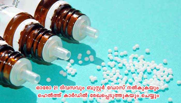 വെച്ചൂച്ചിറ പഞ്ചായത്തിലെ മുഴുവന് കുട്ടികള്ക്കും ഹോമിയോപ്പതി ഇമ്യൂണിറ്റി ബൂസ്റ്റര് മരുന്ന് വിതരണ ഹെല്ത്ത് കാര്ഡും ഇതിന്റെ ഭാഗമായി വിതരണം ചെയ്യും. ഓരോ 21 ദിവസവും ബൂസ്റ്റര് ഡോസ് നല്കുകയും ഹെല്ത്ത് കാര്ഡില് രേഖപ്പെടുത്തുകയും ചെയ്യും. ഇത്തരത്തില് കുട്ടികളെ കേന്ദ്രീകരിച്ചുള്ള ഹോമിയോപ്പതി ഇമ്യൂണിറ്റി ഹെല്ത്ത് കാര്ഡ് പദ്ധതി സംസ്ഥാനത്ത് ആദ്യമായാണ് നടപ്പാക്കുന്നത്.