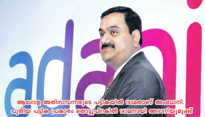 ആഗോള അതിസമ്പന്നരുടെ പട്ടികയിൽ 13ാമതാണ് അംബാനി. പുതിയ പട്ടിക പ്രകാരം തൊട്ടുപിറകിൽ 14ാമനായി അദാനിയുമുണ്ട്.
