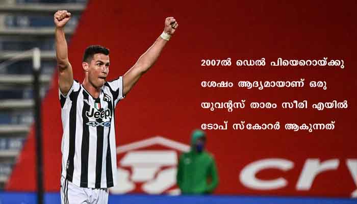 റോം: സീരി എ സീസണ്‍ അവസാനിച്ചപ്പോള്‍ യുവന്റസ് ചാമ്പ്യന്‍സ് ലീഗ് യോഗ്യത ഉറപ്പിച്ചതിനൊപ്പം വ്യക്തിഗത നേട്ടവും സ്വന്തമാക്കി സൂപ്പര്‍ താരം ക്രിസ്റ്റിയാനോ റൊണാള്‍ഡോ. ക്രിസ്റ്റിയാനോ റൊണാള്‍ഡോ ഇറ്റാലിയന്‍ ലീഗില്‍ ടോപ് സ്‌കോറര്‍ ആയാണ് സീസണ്‍ അവസാനിപ്പിക്കുന്നത്. ഇതിനു മുമ്പ് രണ്ട് സീസണില്‍ യുവന്റസില്‍ കളിച്ചിരുന്നെങ്കിലും ഇറ്റലിയില്‍ ആദ്യമായാണ് റൊണാള്‍ഡോ ടോപ് സ്‌കോറര്‍ ആകുന്നത്. 29 ഗോളുകളുമായണ് റൊണാള്‍ഡോ ഗോള്‍വേട്ടയില്‍ ഒന്നാമതായത്. 23 ഗോളുകള്‍ നേടിയ റൊമേലു ലുകാകു ആണ് രണ്ടാമതുള്ളത്. 2007ല്‍ ഡെല്‍ പിയെറൊയ്ക്കു ശേഷം ആദ്യമായാണ് ഒരു യുവന്റസ് താരം സീരി എയില്‍ ടോപ് സ്‌കോറര്‍ ആകുന്നത്. ഈ നേട്ടത്തോടെ യൂറോപ്പിലെ ഏറ്റവും മികച്ച അഞ്ചു ലീഗുകളില്‍ മൂന്ന് ലീഗിലും ടോപ് സ്‌കോറര്‍ പട്ടം നേടുന്ന ആദ്യ താരമായും റൊണാള്‍ഡോ മാറി.