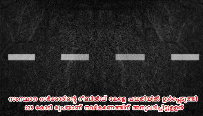 സംസ്ഥാന സര്‍ക്കാരിന്റെ റീബില്‍ഡ് കേരള പദ്ധതിയില്‍ ഉള്‍പ്പെടുത്തി 235 കോടി രൂപയാണ് നവീകരണത്തിന് അനുവദിച്ചിട്ടുളളത്. ഡ്രൈനേജുകള്‍ പുതുക്കി പണിതും വീതി കൂട്ടിയും കൈവേലി നിര്‍മ്മിച്ചും  റോഡ് ബി.എം & ബി.സി ചെയ്ത് ആധുനിക വല്‍ക്കരിക്കുന്ന പ്രവര്‍ത്തിയാണ് ആരംഭിക്കുന്നത്.