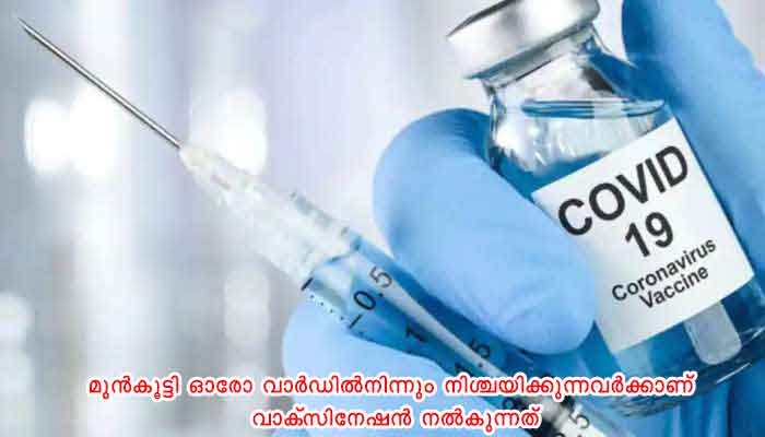 പ്രത്യേക ചേര്ന്ന യോഗം വാക്സിനേഷന് കേന്ദ്രങ്ങളില് പുതിയ ക്രമീകരണങ്ങള് ഏര്പ്പെടുത്തി. നഗരസഭയിലെ 1 മുതല് 12 വരെയുളള വാര്ഡുകള് വെട്ടിപ്പുറം എല്.പി സ്കൂളിലും, 13 മുതല് 24 വരെ കുമ്പഴ എം.ഡി.എല്.പി സ്കൂളിലും, 25 മുതല് 32 വരെയുള്ള വാര്ഡുകള്ക്ക് എസ്.ഡി.എ സ്കൂളിലുമാണ് വാക്സിനേഷന്. മുന്കൂട്ടി ഓരോ വാര്ഡില്നിന്നും നിശ്ചയിക്കുന്നവര്ക്കാണ് വാക്സിനേഷന് നല്കുന്നത്. വാക്സിനേഷന് കേന്ദ്രങ്ങളില് രോഗപ്പകര്ച്ച ഉണ്ടാകുന്നത് തടയാന് കേന്ദ്രങ്ങളിലേക്ക് പ്രവേശിക്കുമ്പോഴും പുറത്തേക്ക് പോകുമ്പോഴും സാനിട്ടേഷനായി സന്നദ്ധ പ്രവര്ത്തകരെ നഗരസഭ നിയമിച്ചിട്ടുണ്ട്. പരമാവധി 40 പേരില് കൂടാതെ നാലു വാര്ഡുകള്ക്കുവച്ചാണ് ദിവസവും വാക്സിന് നല്കുന്നത്