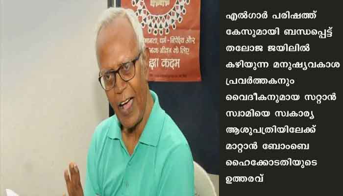 മുംബൈ : എല്ഗാര് പരിഷത്ത് കേസുമായി ബന്ധപ്പെട്ട് തലോജ ജയിലില് കഴിയുന്ന മനുഷ്യവകാശ പ്രവര്ത്തകനും വൈദീകനുമായ സറ്റാന് സ്വാമിയെ സ്വകാര്യ ആശുപത്രിയിലേക്ക് മാറ്റാന് ബോംബെ ഹൈക്കോടതിയുടെ ഉത്തരവ്. 15 ദിവസത്തെ ചികിത്സക്കായി സബര്ബന് ബന്ദ്രയിലെ ഹോളിഫാമിലി ആശുപത്രിയിലേക്ക് മാറ്റാനാണ് ബോംബേ ഹൈക്കോടതി മഹാരാഷ്ട്ര സര്ക്കാനിന് നിര്ദ്ദേശം നല്കിയത്. കേസില് അറസ്റ്റിലായ സ്വാമി 2020 ഒക്ടോബര് മുതല് ജയിലില് കഴിയുകയാണ്.