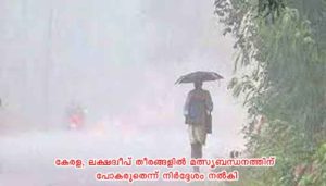 കേരള തീരത്ത് ശക്തമായ കാറ്റിനും സാധ്യതയുണ്ടെന്ന് മുന്നറിയിപ്പുണ്ട്. മണിക്കൂറിൽ പരമാവധി 50 കിമി വരെ വേഗതയിൽ കാറ്റ് വീശിയേക്കുമെന്നാണ് റിപ്പോർട്ട്. കേരള, ലക്ഷദ്വീപ് തീരങ്ങളിൽ മത്സ്യബന്ധനത്തിന് പോകരുതെന്ന് നിർദ്ദേശം നൽകി.