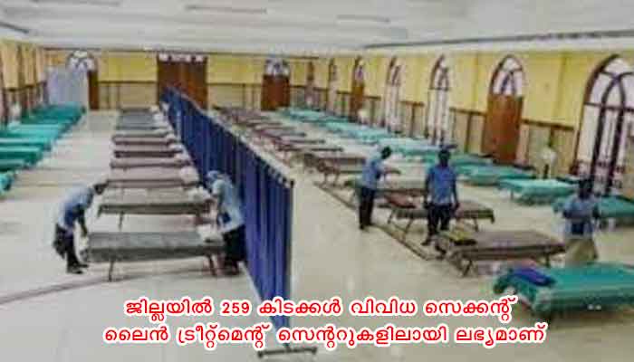 ആരോഗ്യവിഭാഗത്തിന്റെ നേതൃത്വത്തിൽ 13 കേന്ദ്രങ്ങളിലായി സജ്ജമാക്കിയ കോവിഡ് സെക്കന്റ് ലൈൻ ട്രീറ്റ്മെന്റ് സെന്ററുകളിൽ 660 കിടക്കൾ സജ്ജമാക്കി. ഇവിടങ്ങളിൽ 401 പേർ ചികിത്സയിലാണ്. ജില്ലയിൽ 259 കിടക്കൾ വിവിധ സെക്കന്റ് ലൈൻ ട്രീറ്റ്മെന്റ് സെന്ററുകളിലായി ലഭ്യമാണ്.