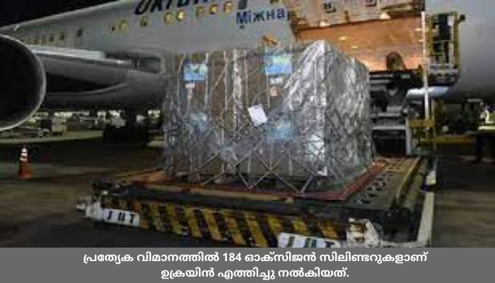 ന്യൂഡൽഹി: ഇന്ത്യക്ക് വിവിധ രാജ്യങ്ങളിൽ നിന്നുള്ള സഹായം തുടരുന്നു. ഉക്രയിനാണ് ഈ ആഴ്ച ആദ്യഘട്ട സഹായം എത്തിച്ചത്. പ്രത്യേക വിമാനത്തിൽ 184 ഓക്സിജൻ സിലിണ്ടറുകളാണ് ഉക്രയിൻ എത്തിച്ചു നൽകിയത്.