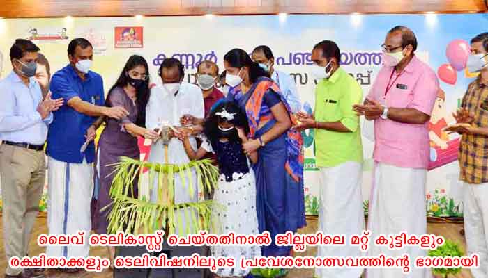 കണ്ണൂർ: സ്‌കൂള്‍ തുറക്കുന്നതിന്റെ ആഘോഷാരവങ്ങള്‍ക്ക് കൊവിഡ് വ്യാപനം തടസ്സമായതോടെ ഓണ്‍ലൈന്‍ പ്രവേശനോത്സവത്തിന്റെ സാധ്യതകളില്‍ അക്ഷരങ്ങളുടെയും അറിവിന്റെയും ലോകത്തേക്ക് ചിറക് വിരിക്കുകയാണ് ജില്ലയിലെ കുരുന്നുകള്‍. പുത്തനുടുപ്പും പുതുമണമുള്ള പുസ്തകങ്ങളും ബാഗും കുടയും പുതിയ കൂട്ടുകാരുമായി സ്‌കൂളുകളിലെത്തിയിരുന്ന അധ്യയന വര്‍ഷാരംഭത്തിന്റെ ശബളിമ വീട്ടുമുറിയിലെ ടെലിവിഷന് മുമ്പിലിരുന്ന് ഇക്കുറി കുഞ്ഞുങ്ങള്‍ ആഘോഷമാക്കി. പൊതുവിദ്യാഭ്യാസ വകുപ്പും ജില്ലാ പഞ്ചായത്തും ചേര്‍ന്നൊരുക്കിയ ജില്ലാതല പ്രവേശനോത്സവമാണ്  കുരുന്നുകള്‍ക്ക് വിരുന്നായത്.