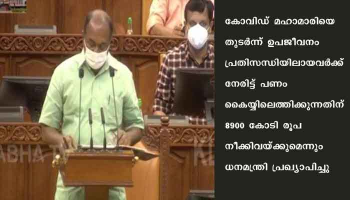 കോവിഡ് മഹാമാരിയെ തുടര്ന്ന് ഉപജീവനം പ്രതിസന്ധിയിലായവര്ക്ക് നേരിട്ട് പണം കൈയ്യിലെത്തിക്കുന്നതിന് 8900 കോടി രൂപ നീക്കിവയ്ക്കുമെന്നും ധനമന്ത്രി പ്രഖ്യാപിച്ചു. എല്ലാവര്ക്കും സൗജന്യ കോവിഡ് വാക്സിന് സര്ക്കാരിന്റെ ചെലവിലാണെങ്കിലും ഉടന് ലഭ്യമാക്കും. മെഡിക്കല് കോളേജുകളില് പകര്ച്ച വ്യാധികള് തടയുന്നതിനായി പ്രത്യേക ബ്ലോക്കുകള്, പുതിയ ഓക്സിജന് പ്ലാന്റ് എന്നിവ ആരംഭിക്കുമെന്നും ധനമന്ത്രി ബജറ്റില് പ്രഖ്യാപിച്ചു.
