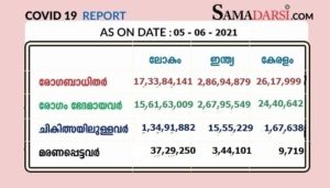 കഴിഞ്ഞ ദിവസങ്ങളിലുണ്ടായ 209 മരണങ്ങളാണ് കോവിഡ്-19 മൂലമാണെന്ന് 05/06/2021 ശനിയാഴ്ച സ്ഥിരീകരിച്ചത്. ഇതോടെ ആകെ മരണം 9719 ആയി.