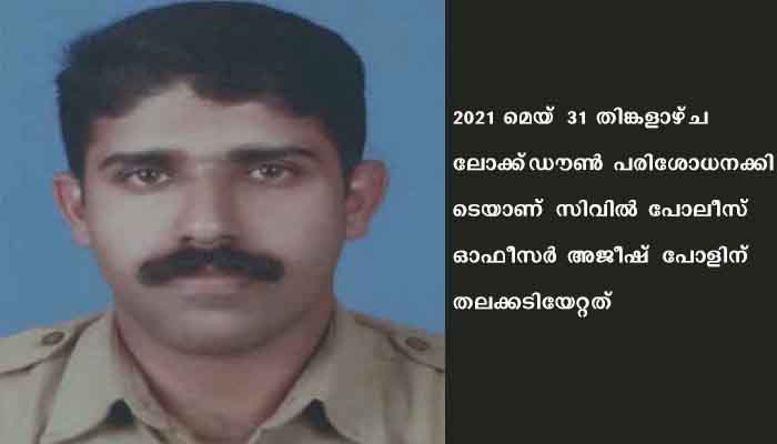 2021 മെയ്‌ 31 തിങ്കളാഴ്‌ച ലോക്ക്‌ഡൗണ്‍ പരിശോധനക്കിടെയാണ്‌ സിവില്‍ പോലീസ്‌ ഓഫീസര്‍ അജീഷ്‌ പോളിന്‌ തലക്കടിയേറ്റത്‌. മറയൂര്‍ കോവില്‍ കടവില്‍ വെച്ചാണ്‌ സംഭവം. മാസ്‌ക്‌ ധരിക്കാതെ നിന്ന പ്രദേശവാസിയായ സുലൈമാനെ ചോദ്യം ചെയ്‌തതിനെ തുടര്‍ന്ന്‌ കല്ലുകൊണ്ട്‌ തലക്കടിക്കുകയായിരുന്നു.