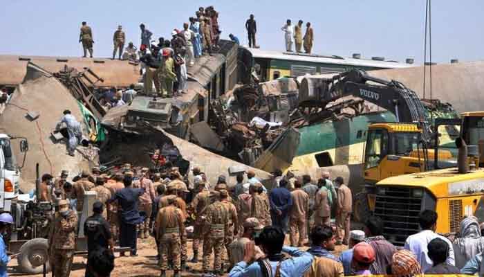 പാളംതെറ്റി അടുത്ത ട്രാക്കിലേക്കു മറിഞ്ഞ ട്രെയിനില്‍ മറ്റൊരു ട്രെയിന്‍ ഇടിക്കുകയായിരുന്നു. കറാച്ചിയില്‍ നിന്നും സര്‍ഗോദയിലേക്കുള്ള മില്ലാറ്റ് എക്‌സ്പ്രസ് പാളം തെറ്റി മറിയുകയും എതിരേ വന്ന സര്‍ സയ്യിദ് എക്‌സ്പ്രസ്സ് ഇതിന്‍മേല്‍ ഇടിക്കുകയുമായിരുന്നെന്നു പാകിസ്താന്‍ റെയില്‍വേ വക്താവു പറഞ്ഞു.