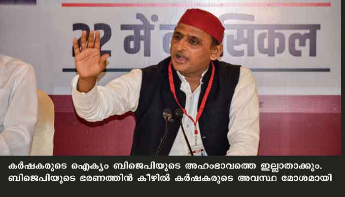 ലക്നൗ: വിവാദ കാര്ഷിക നിയമങ്ങളില് കേന്ദ്രസര്ക്കാരിന് കടും പിടുത്തമാണെന്നും ഇതിനെതിരായ കര്ഷക രോഷം അടുത്ത തിരഞ്ഞെടുപ്പില് പ്രതിഫലിക്കുകയും അത് ബിജെപിയുടെ ഇഗോയെ തകര്ക്കുമെന്നും സമാജ്വാദി പാര്ട്ടി പ്രസിഡന്റ് അഖിലേഷ് യാദവ്. കര്ഷകരുടെ ഐക്യം ബിജെപിയുടെ അഹംഭാവത്തെ ഇല്ലാതാക്കും. ബിജെപിയുടെ ഭരണത്തിന് കീഴില് കര്ഷകരുടെ അവസ്ഥ മോശമായി. കര്ഷകരെ സാമ്പത്തികമായി ബാധിച്ചു. കഴിഞ്ഞ വര്ഷം ബിജെപി നടപ്പാക്കിയ കറുത്ത കാര്ഷിക നിയമങ്ങള് കാര്ഷിക സമ്പദ്വ്യവസ്ഥയെ മുഴുവന് നശിപ്പിച്ചുവെന്നും അദ്ദേഹം പറഞ്ഞു.