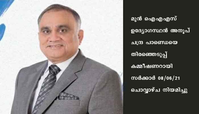 ന്യൂഡൽഹി: മുൻ ഐ‌എ‌എസ് ഉദ്യോഗസ്ഥൻ അനൂപ് ചന്ദ്ര പാണ്ഡെയെ തിരഞ്ഞെടുപ്പ് കമ്മീഷണറായി സർക്കാർ 08/06/21 ചൊവ്വാഴ്ച നിയമിച്ചു.