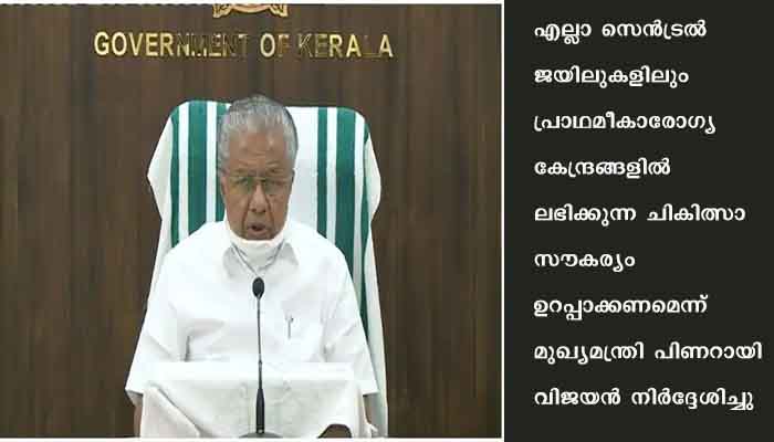 ജയിലുകളില് ചുരുങ്ങിയത് രണ്ട് ഡോക്ടര്മാരെ നിയോഗിക്കും. ആവശ്യമെങ്കില് അധിക തസ്തിക സൃഷ്ടിക്കും. എല്ലാ ജയിലുകളിലും ടെലിമെഡിസിന് സൗകര്യം ഏര്പ്പെടുത്തും. മെഡിക്കല് കോളേജാശുപത്രികളില് തടവുകാര്ക്ക് പ്രത്യേക ചികിത്സാ സംവിധാനം ഒരുക്കുമെന്നും മുഖ്യമന്ത്രി പറഞ്ഞു.