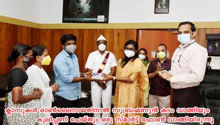 ക്ലാസുകള് ഓണ്ലൈനായതിനാല് സുബ്രഹ്മണ്യന് കടം വാങ്ങിയും കൂലിപ്പണി ചെയ്തും ഒരു സ്മാര്ട്ട് ഫോണ് വാങ്ങിയിരുന്നു. എന്നാല് മൂന്ന് പേര്ക്കും ഒരേ സമയം ക്ലാസുകളായതിനാല് ഒരു ഫോണില് പഠിക്കാന് കഴിയാത്ത അവസ്ഥയിലാണ് മുത്തശ്ശി കലക്ടറെ വിളിച്ച് ആവശ്യം അറിയിച്ചത്. ആവശ്യം അംഗീകരിച്ച കലക്ടര് തഹസില്ദാര് മുഖേന നടത്തിയ അന്വേഷണത്തില് അജീഷിന് ഫോണ് നല്കാന് തീരുമാനിക്കുകയായിരുന്നു. ഇതു പ്രകാരം അജീഷും അമ്മയും മുത്തശ്ശിയും കൂടെ കലക്ടറേറ്റിലെത്തി ഫോണ് സ്വീകരിച്ചു. കലക്ടറുടെ ചേംബറില് നടന്ന ചടങ്ങില് കലക്ടറുടെ സാന്നിധ്യത്തില് അസിസ്റ്റന്റ് കലക്ടര് സഫ്ന നസറുദ്ദീന് അജീഷിന് ഫോണ് കൈമാറി.