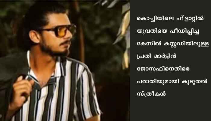 കൊച്ചി: കൊച്ചിയിലെ ഫ്ളാറ്റില് യുവതിയെ പീഡിപ്പിച്ച കേസില് കസ്റ്റഡിയിലുള്ള പ്രതി മാര്ട്ടിന് ജോസഫിനെതിരെ പരാതിയുമായി കൂടുതല് സ്ത്രീകള്. രണ്ടു സ്ത്രീകള് കൂടിയാണ് 11/06/21 വെള്ളിയാഴ്ച പരാതി നല്കിയിരിക്കുന്നത്. മാര്ട്ടിനെതിരെ പരാതിയുള്ളവര് പോലീസില് പരാതി നല്കണമെന്ന് വെള്ളിയാഴ്ച പൊലീസ് അറിയിച്ചതിന് പിന്നാലെയാണ് രണ്ടു സ്ത്രീകള് പരാതിയുമായി എത്തിയത്. ഈ പരാതിയെക്കുറിച്ച് അന്വേഷിക്കുമെന്ന് പോലീസ് അറിയിച്ചു. മാര്ട്ടിനില് നിന്നും തങ്ങള്ക്കും മാനസികവും ശാരീരികവും ആയ പീഡനങ്ങള് ഏല്ക്കേണ്ടി വന്നിട്ടുണ്ടെന്ന് പരാതിയില് പറയുന്നു.
