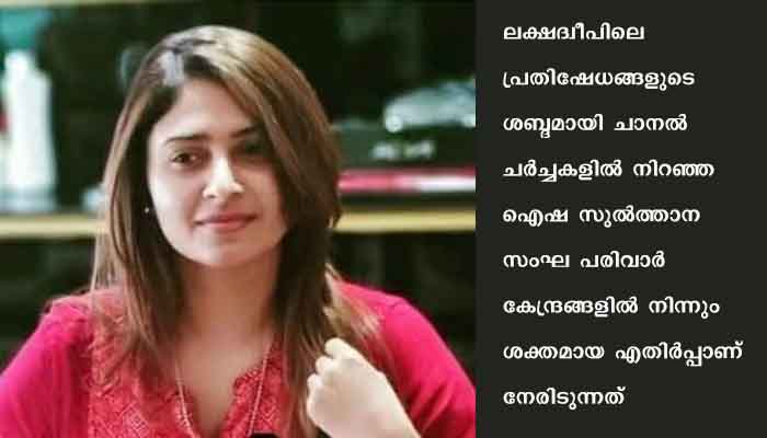 ലക്ഷദ്വീപിലെ പ്രതിഷേധങ്ങളുടെ ശബ്ദമായി ചാനൽ ചർച്ചകളിൽ നിറഞ്ഞ ഐഷ സുൽത്താന സംഘ പരിവാർ കേന്ദ്രങ്ങളിൽ നിന്നും ശക്തമായ എതിർപ്പാണ് നേരിടുന്നത്. അതിന്റെ തുടർചയാണ് ഇപ്പോൾ എടുത്തിരിക്കുന്ന രാജ്യദ്രോഹക്കേസ്.