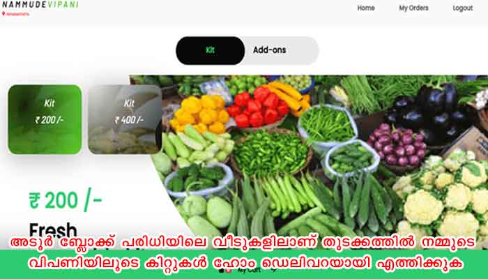 അടൂര് ബ്ലോക്ക് പരിധിയിലെ വീടുകളിലാണ് തുടക്കത്തില് നമ്മുടെ വിപണിയിലൂടെ കിറ്റുകള് ഹോം ഡെലിവറയായി എത്തിക്കുക. തുടര്ന്ന് ജില്ലയിലെ മറ്റ് ബ്ലോക്കുകളിലേക്കും പ്രവര്ത്തനം വ്യാപിപ്പിക്കും.