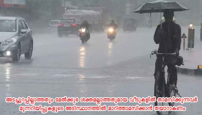 അടച്ചുറപ്പില്ലാത്തതും മേല്ക്കൂര ശക്തമല്ലാത്തതുമായ വീടുകളില് താമസിക്കുന്നവര് മുന്നറിയിപ്പുകളുടെ അടിസ്ഥാനത്തില് മാറിത്താമസിക്കാന് തയാറാകണം. സ്വകാര്യ – പൊതു ഇടങ്ങളില് അപകടാവസ്ഥയില് നില്ക്കുന്ന മരങ്ങള്, പോസ്റ്റുകള്, ബോര്ഡുകള് തുടങ്ങിയവ സുരക്ഷിതമാക്കണം. മരങ്ങള് കോതി ഒതുക്കുകയും ചെയ്യണം. ദുരിതാശ്വാസ ക്യാമ്പുകളിലേക്കു മാറേണ്ട ഘട്ടമുണ്ടായാല് പൂര്ണമായും കോവിഡ് മാനദണ്ഡങ്ങള് പാലിക്കാന് തയാറാകണമെന്നും കളക്ടര് അഭ്യര്ഥിച്ചു.