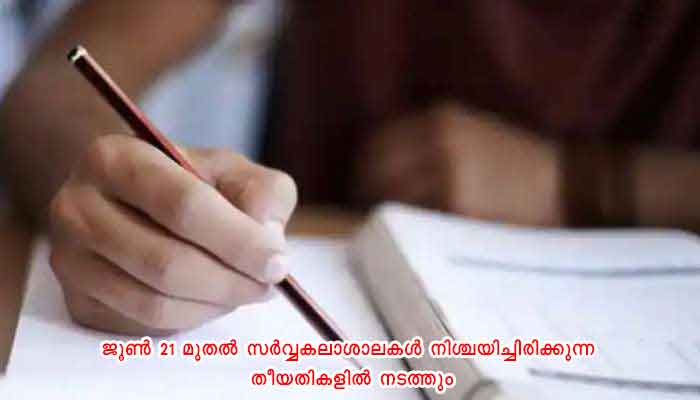 തിരുവനന്തപുരം: വിവിധ സർവ്വകലാശാലകളുടെ ഫൈനൽ സെമസ്റ്റർ പരീക്ഷകൾ ജൂൺ 28ന് ആരംഭിക്കും. ഉന്നത വിദ്യാഭ്യാസ മന്ത്രി ഡോ.ആർ.ബിന്ദുവിന്റെ അധ്യക്ഷതയിൽ നടന്ന വൈസ്ചാൻസലർമാരുടെ യോഗത്തിലാണ് തീരുമാനം. ബി.എസ്സി നഴ്സിംഗ്, ബി.എഡ്, ബിവോക്ക് കോഴ്സുകളുടെ ഫൈനൽ പരീക്ഷകൾ ജൂൺ 21 മുതൽ സർവ്വകലാശാലകൾ നിശ്ചയിച്ചിരിക്കുന്ന തീയതികളിൽ നടത്തും. പരീക്ഷ നടത്തിപ്പുമായി ബന്ധപ്പെട്ട് കോവിഡ് പ്രോട്ടോകോൾ കർശനമായി പാലിക്കും. അതിനായി വിവിധ വകുപ്പുകളുടെ ഏകോപനം ഉറപ്പുവരുത്തും. അധ്യാപകർ പരീക്ഷാ ചുമതലകൾ നിർബന്ധമായും ചെയ്യണമെന്ന് നിർദ്ദേശം നൽകാൻ തീരുമാനിച്ചു.