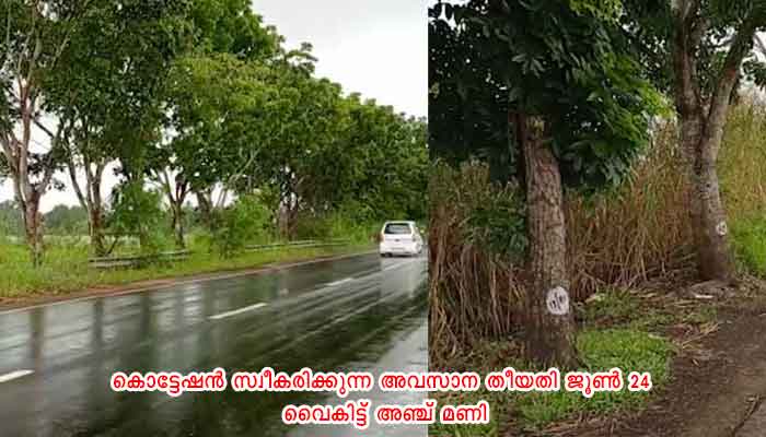 ആലപ്പുഴ-ചങ്ങനാശ്ശേരി റോഡരുകുലെ മരങ്ങളുടെ ലേലം 25ന്