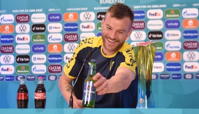 യൂറോ കപ്പിലെ വാർത്താസമ്മേളനങ്ങൾ വീണ്ടും ചർച്ചയാവുന്നു. വാർത്താസമ്മേളനത്തിനിടെ മുൻപ് രണ്ട് വട്ടം ‘മാറ്റിനിർത്തപ്പെടേണ്ടിവന്ന’ കൊക്കക്കോളയെ ഇത്തവണ അരികിലേക്ക് ചേർത്തുവച്ചിരിക്കുകയാണ് യുക്രൈൻ താരം ആൻഡ്രി യാർമെലെങ്കോ. കോലക്കൊപ്പം ഹെയ്ന്കെയിൻ്റെ ബിയർ കുപ്പിയെയും താരം അരികിലേക്ക് എടുത്തുവച്ചു.
